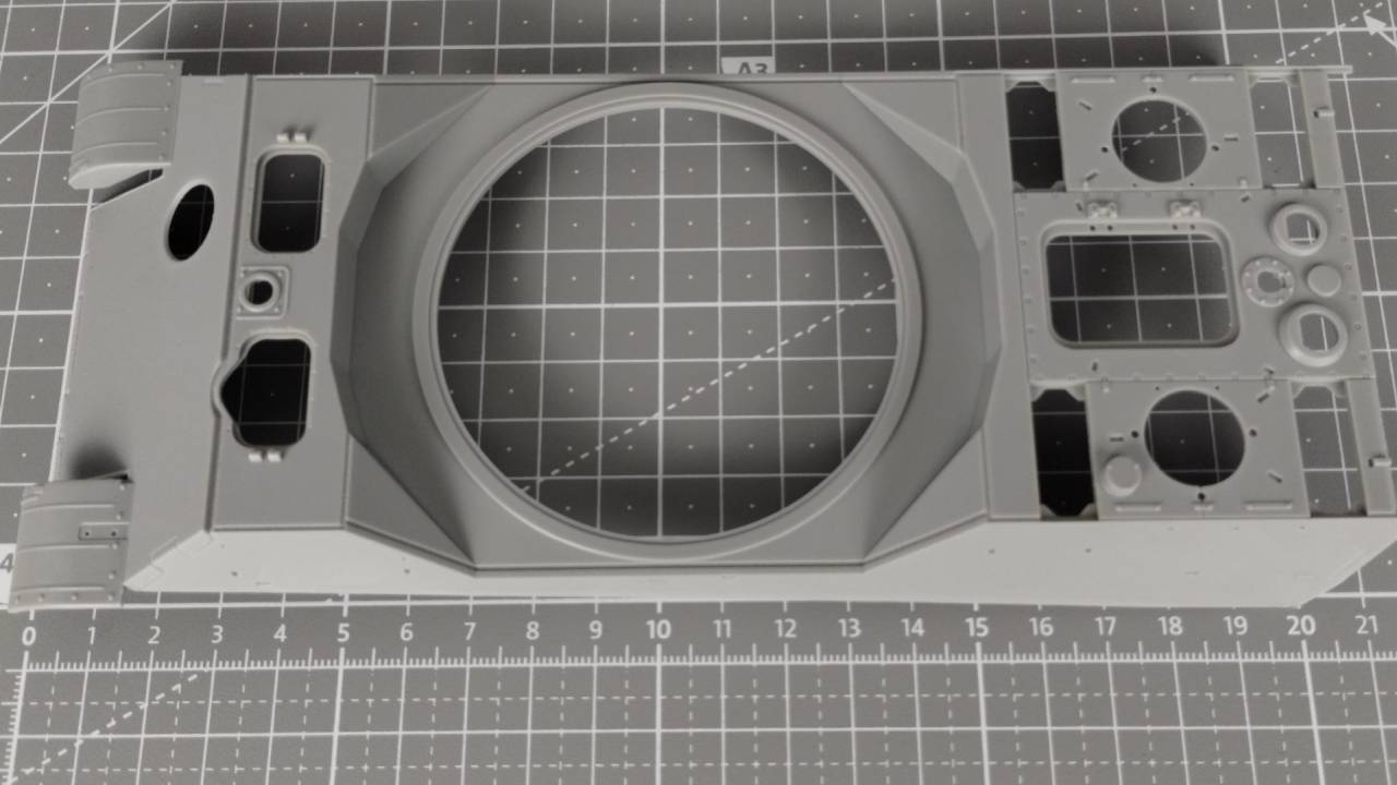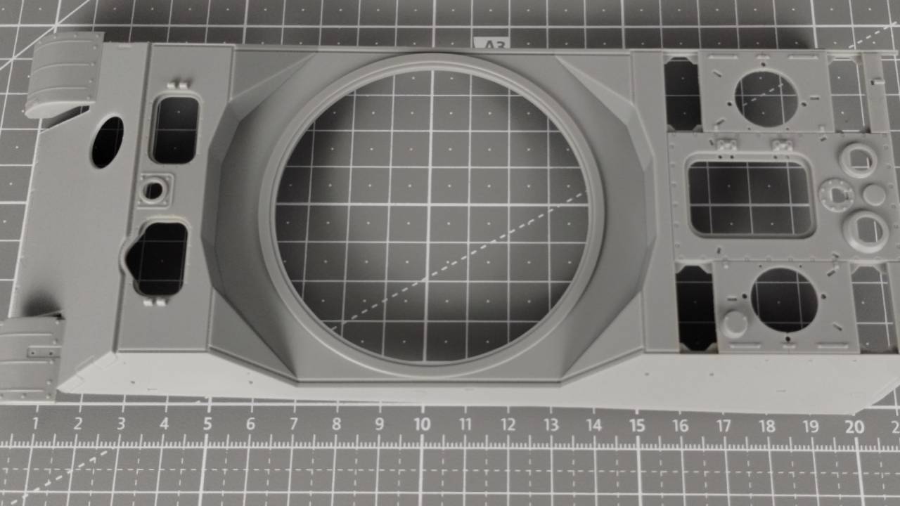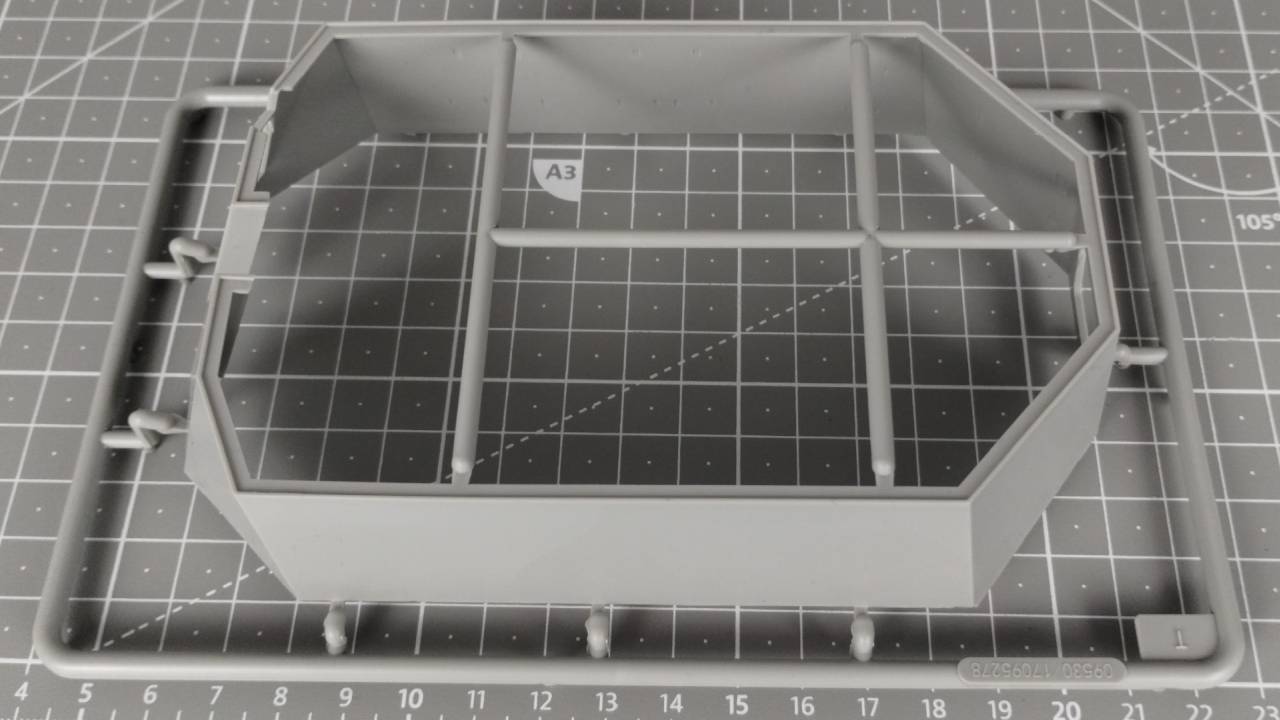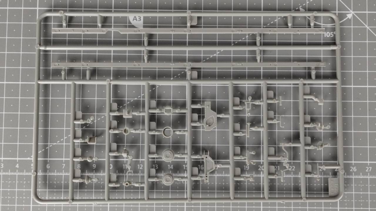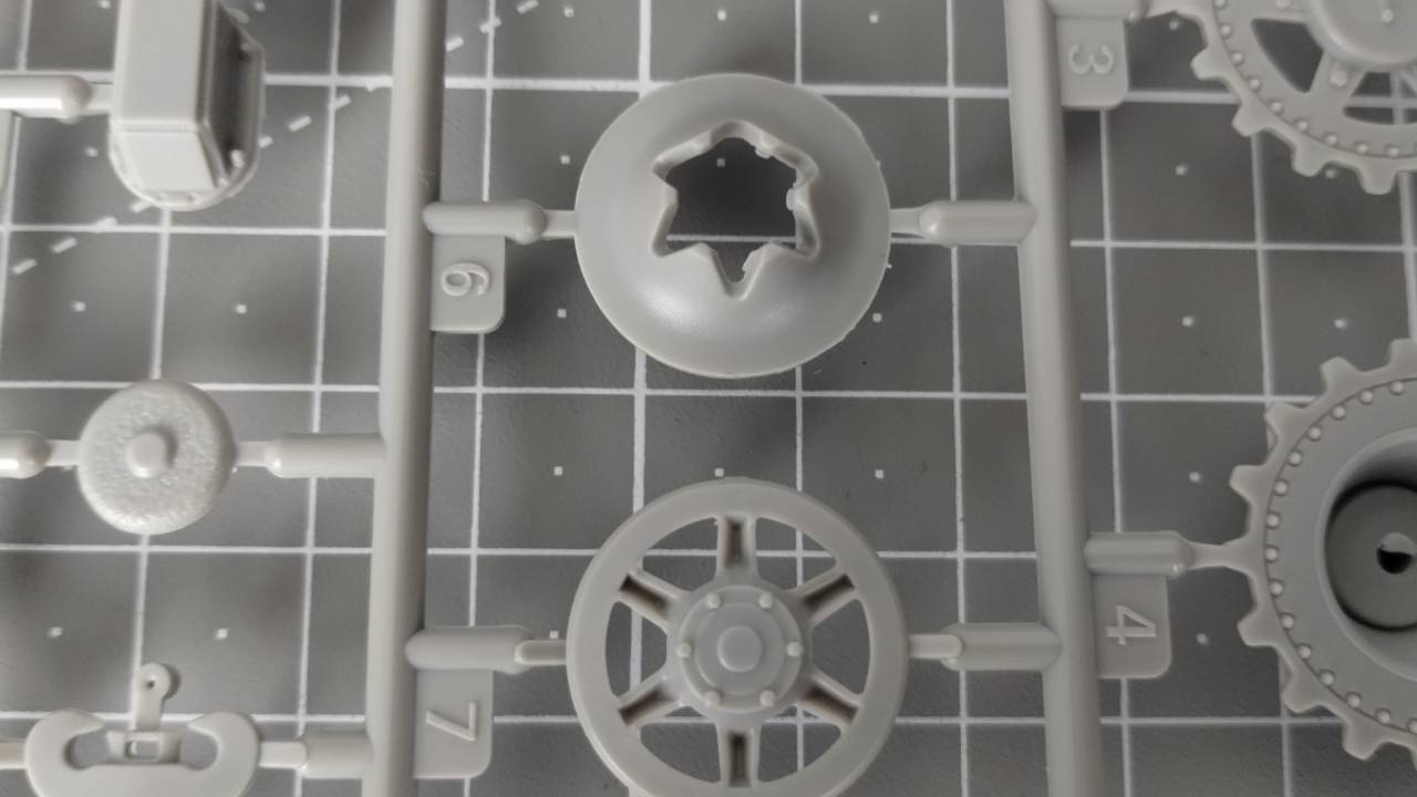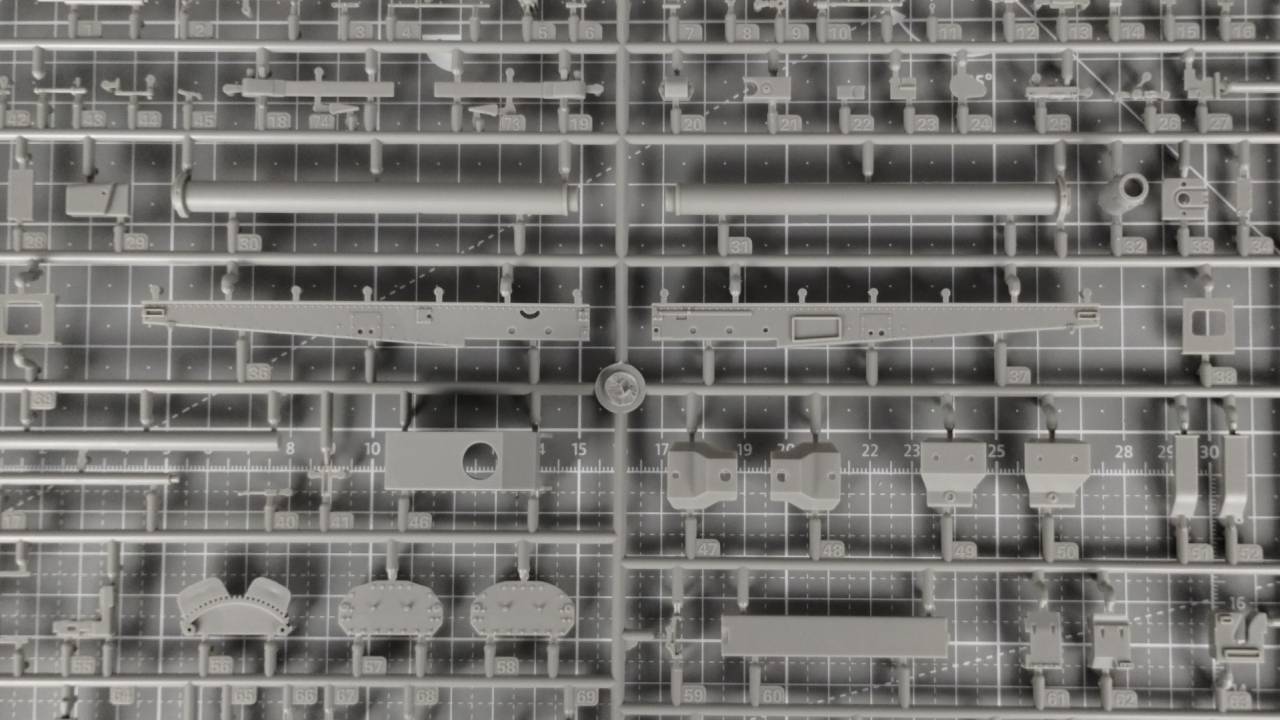 Jeśli odjąć od wszystkich wyprasek te poświęcone zawieszeniu i gąsienicom, to znaczna część elementów stanowi wyposażenie wnętrza wieżyczki, gdzie znajduje się działo, które zostało całkiem dobrze odwzorowane (a przynajmniej sądzę tak na podstawie jakości elementów w wypraskach). Od razu widać, że model Flakpanther w/8.8cm jest nastawiony na dbanie o każdy detal, nawet wewnątrz, a może przede wszystkim wewnątrz.