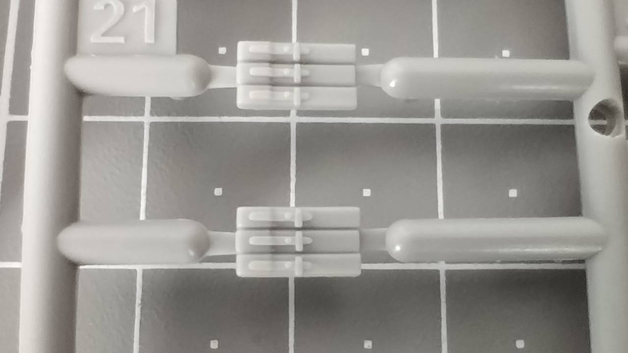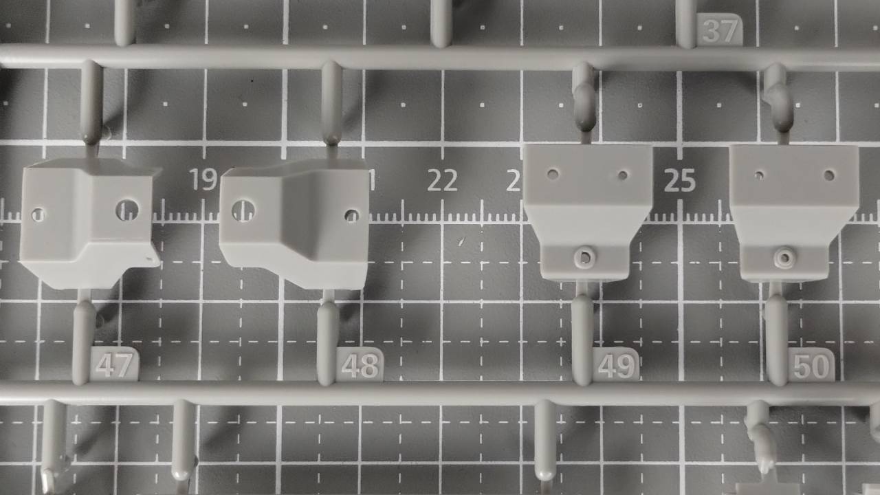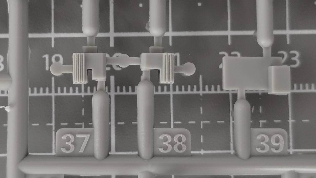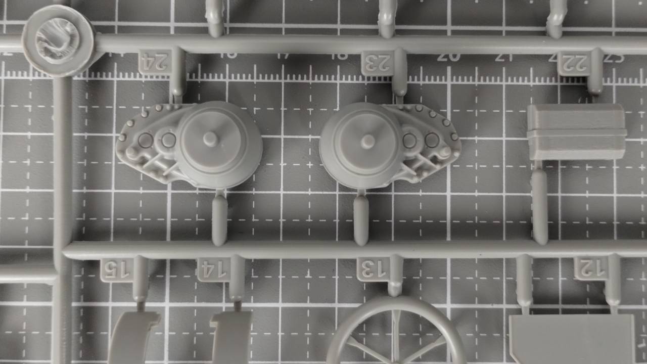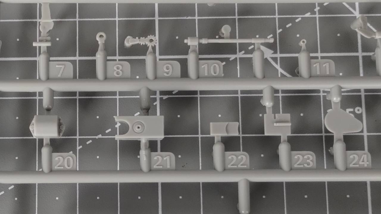 Wszystkie elementy w wypraskach są bogate w detale i widać dużą dbałość o szczegóły, chociaż muszę przyznać, że niektóre elementy są bardzo delikatne. W trakcie składania miałem delikatny problem ze spasowaniem kilku elementów, i przy składaniu małego elementu zawieszenia pękł jeden mały element. Na szczęście nie było to całkowite pęknięcie, i potraktowanie elementu klejem rozwiązało problem.
