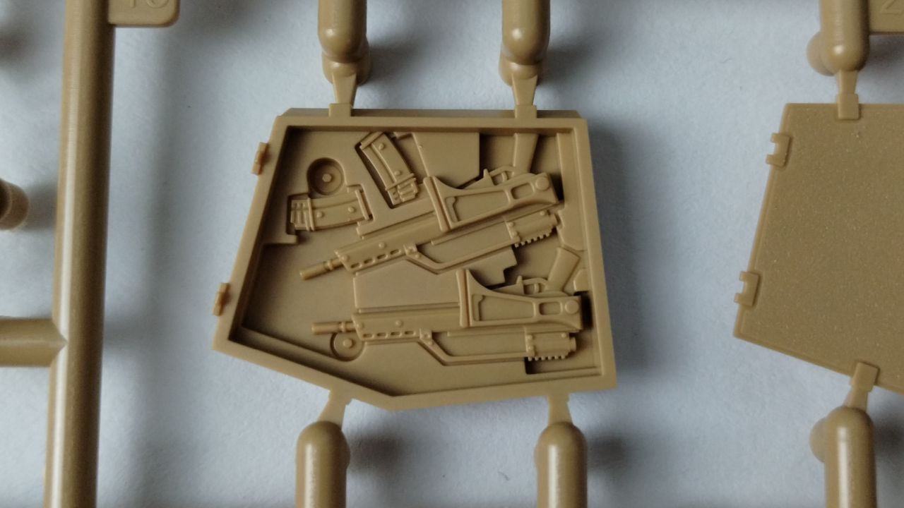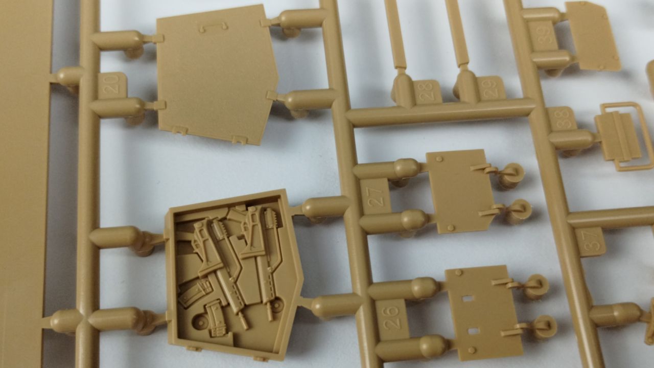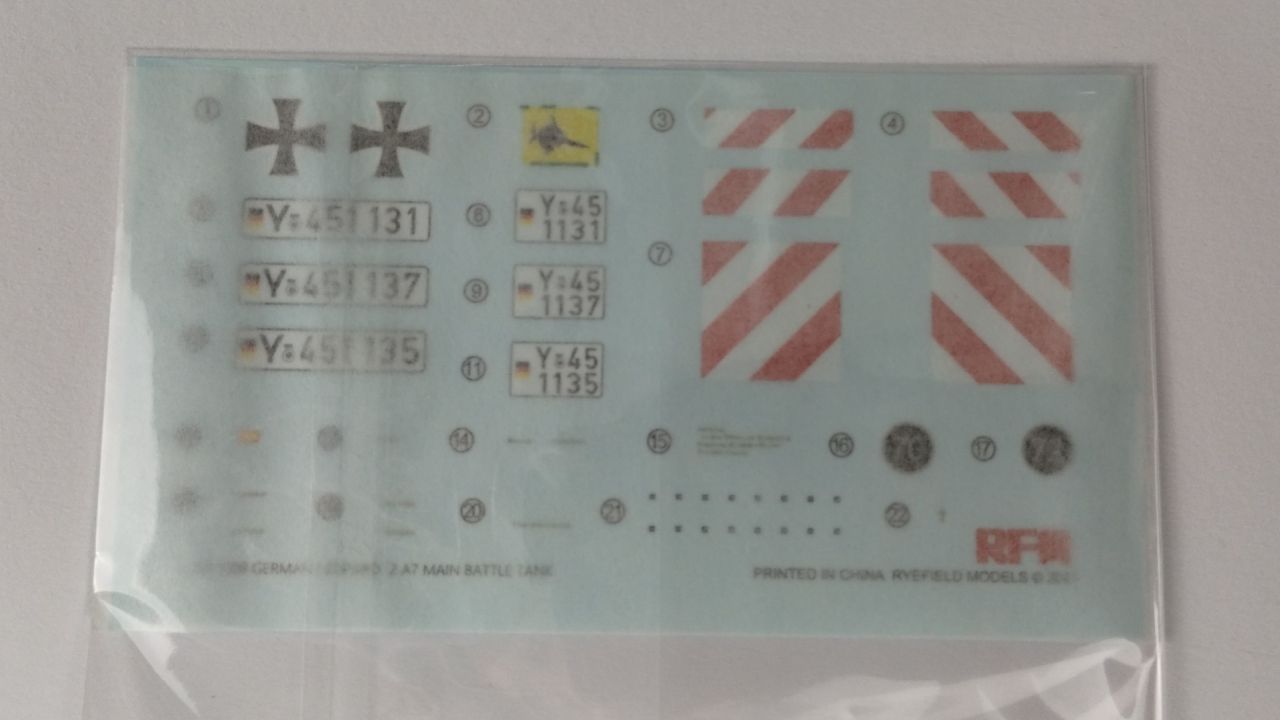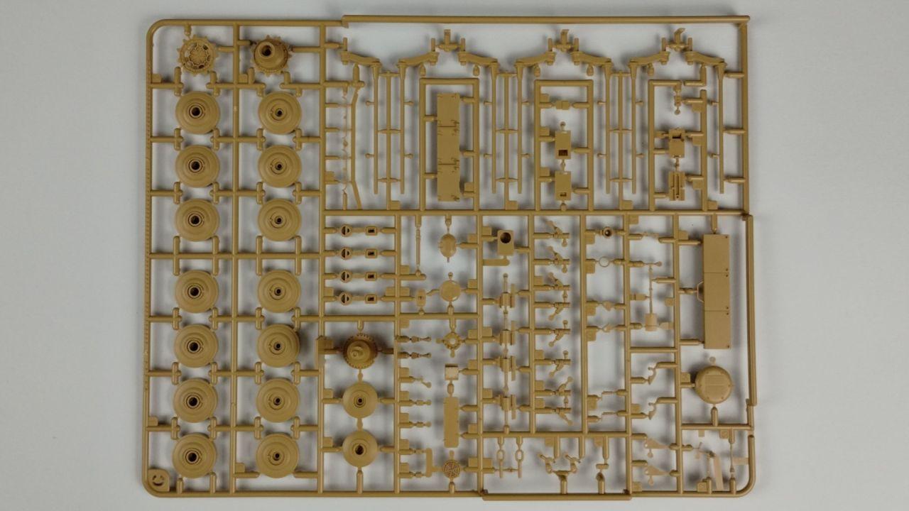 Po tych kilku ciekawostkach przyszła pora na sprawdzenie tego, co znajduje się w pudełku z modelem Leopard 2A7 – a trzeba przyznać, że elementów jest całkiem sporo.