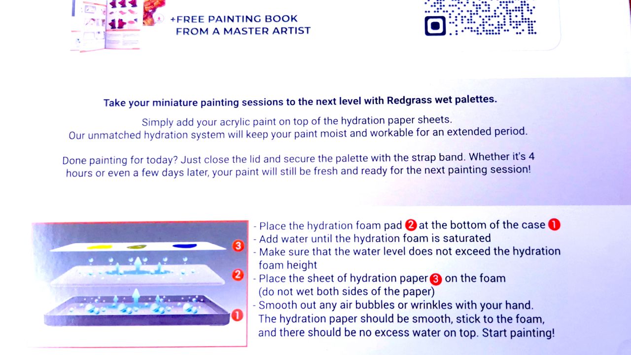 Kolejnym powodem zakupu była dodatkowa zawartość w postaci 72-stronicowej książki z poradnikami dotyczącymi malowania, użytkowania mokrej palety, oraz katalogiem produktów z innych serii od RedGrass. Przejdźmy więc do opisania tego, co znajduje się w pudełku.