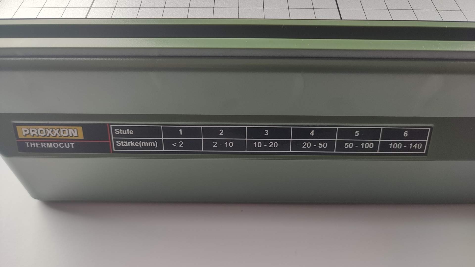 Proxxon THERMOCUT 230/E pozwala na cięcie styropianu, pianki XPS itp. o grubości mieszczącej się w jednym z 6 zakresów: